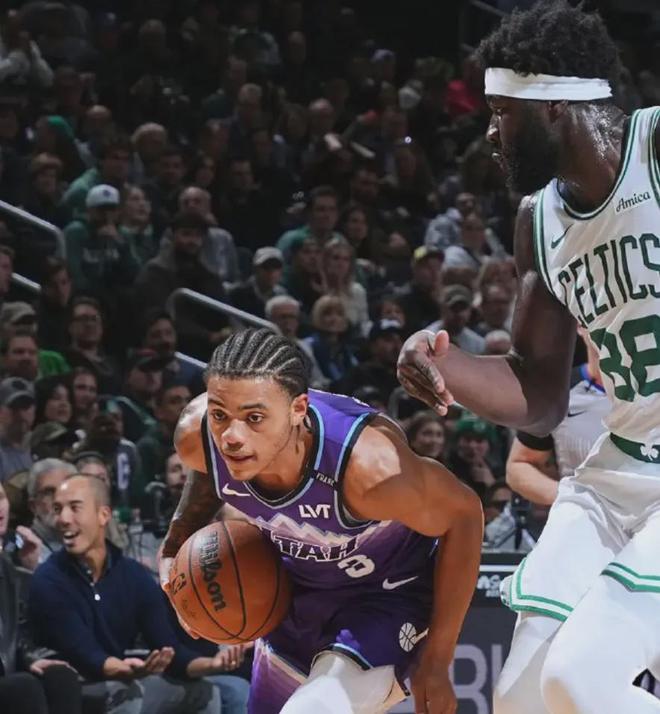 全场比赛,站出来硬刚凯尔特人的,其实是爵士小将基扬·乔治。