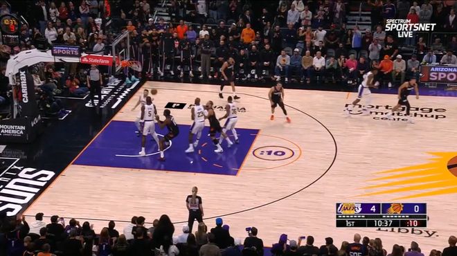 次节3分30秒,文森特左侧持球,詹姆斯在掩护时将狄龙撞倒在地。