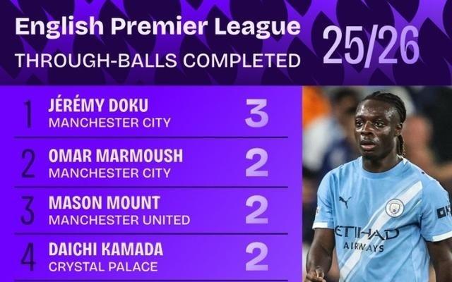 能突能传!多库3次成功直塞领跑英超排名,芒特廷伯等9人两次