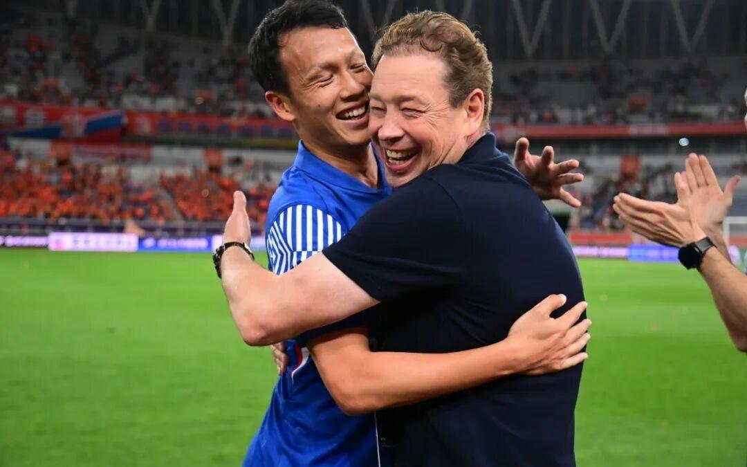 赛后韩鹏主动上前迎接球员,泰山队的凝聚力真是越来越好了
