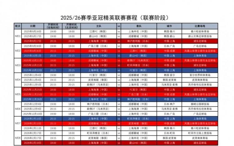 足协汇总中超4队亚冠赛程:精英联赛联赛阶段9月16日2月18日进行
