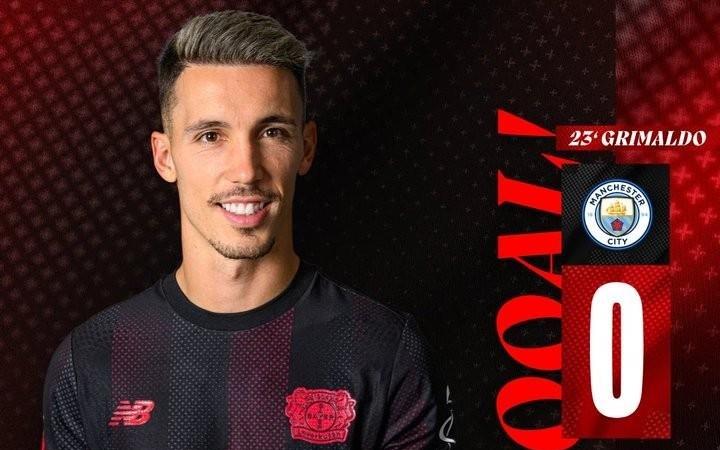 格里马尔多破门,勒沃库森队史第二次欧冠做客英格兰取得领先