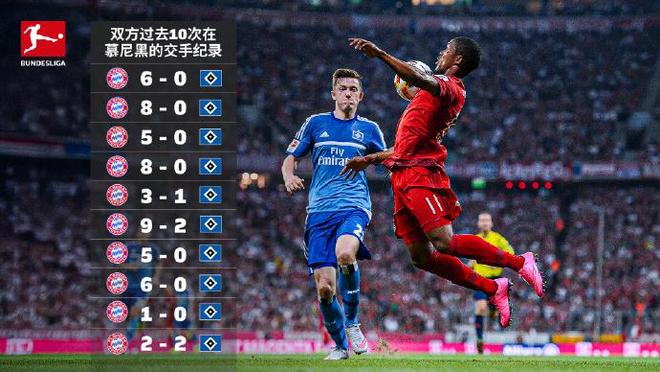 德甲官方社媒回顾了过去10次拜仁主场对阵汉堡的的比赛战果,其中拜仁9-2狂屠汉堡在列,另有两场8-0惨案、两场6-0以及1场5-0。拜仁9胜1平占据绝对优势。